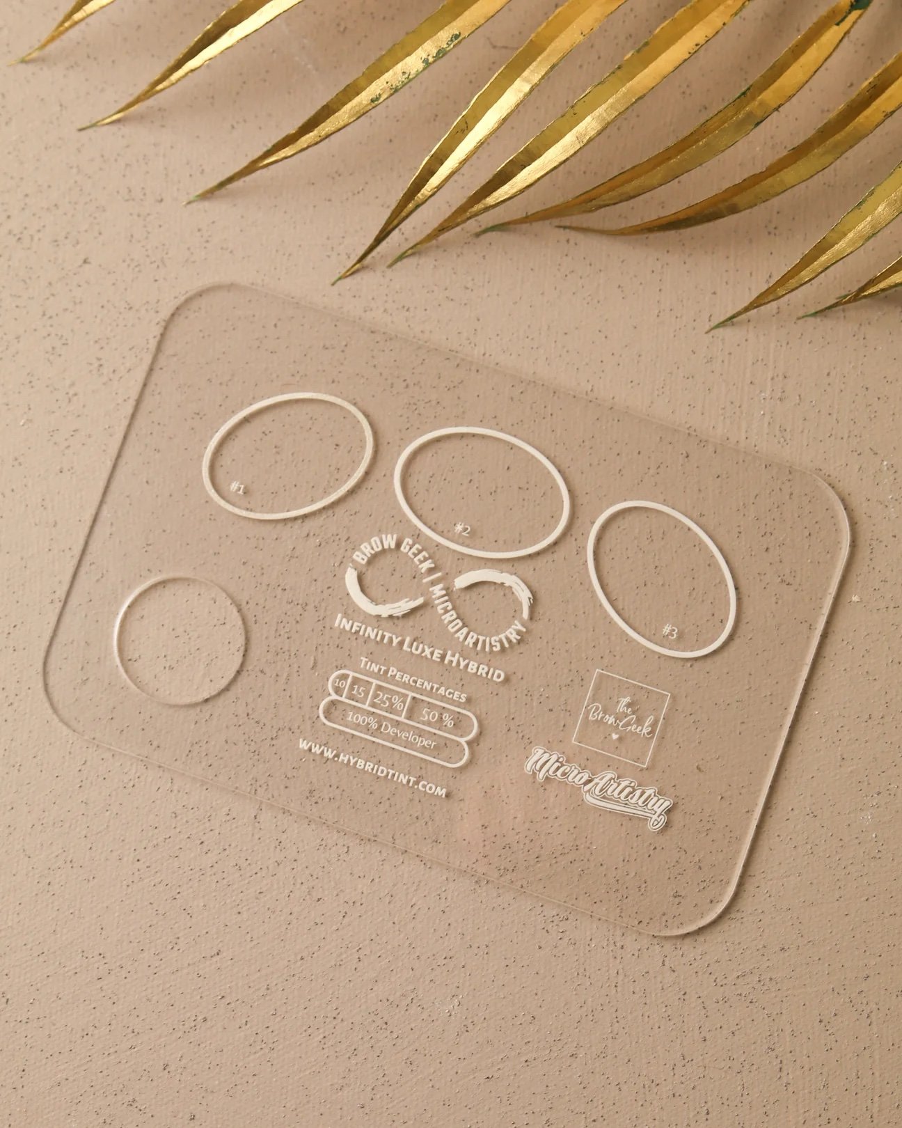 This artist Palette makes all of your Lash/Brow lift or Tinting services easy! This palette is clear with sections for your lifting products, you can easily transport products and keep them separate for the service. You are ready to custom blend your colors by using tinting ratios easily! You just need to fill up the sections with tint, until you have 100% of the area covered, then fill the developer section with an equal amount of your developer and mix the 2 sections together. This tool is washable, sanitizable and reusable. You can wash and sanitize between services or purchase multiple to use through your busy day and wash them all when you are finished.